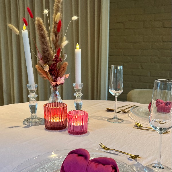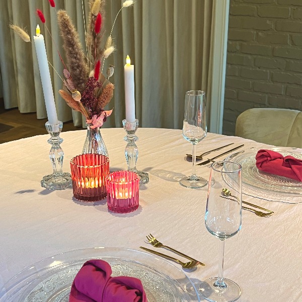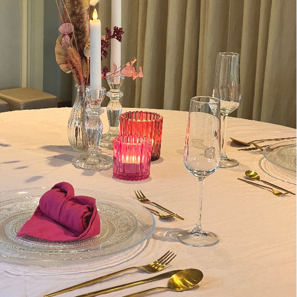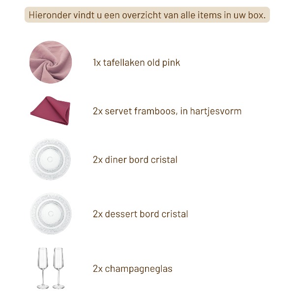 Het servies en de servetten mogen vuil geretourneerd worden!